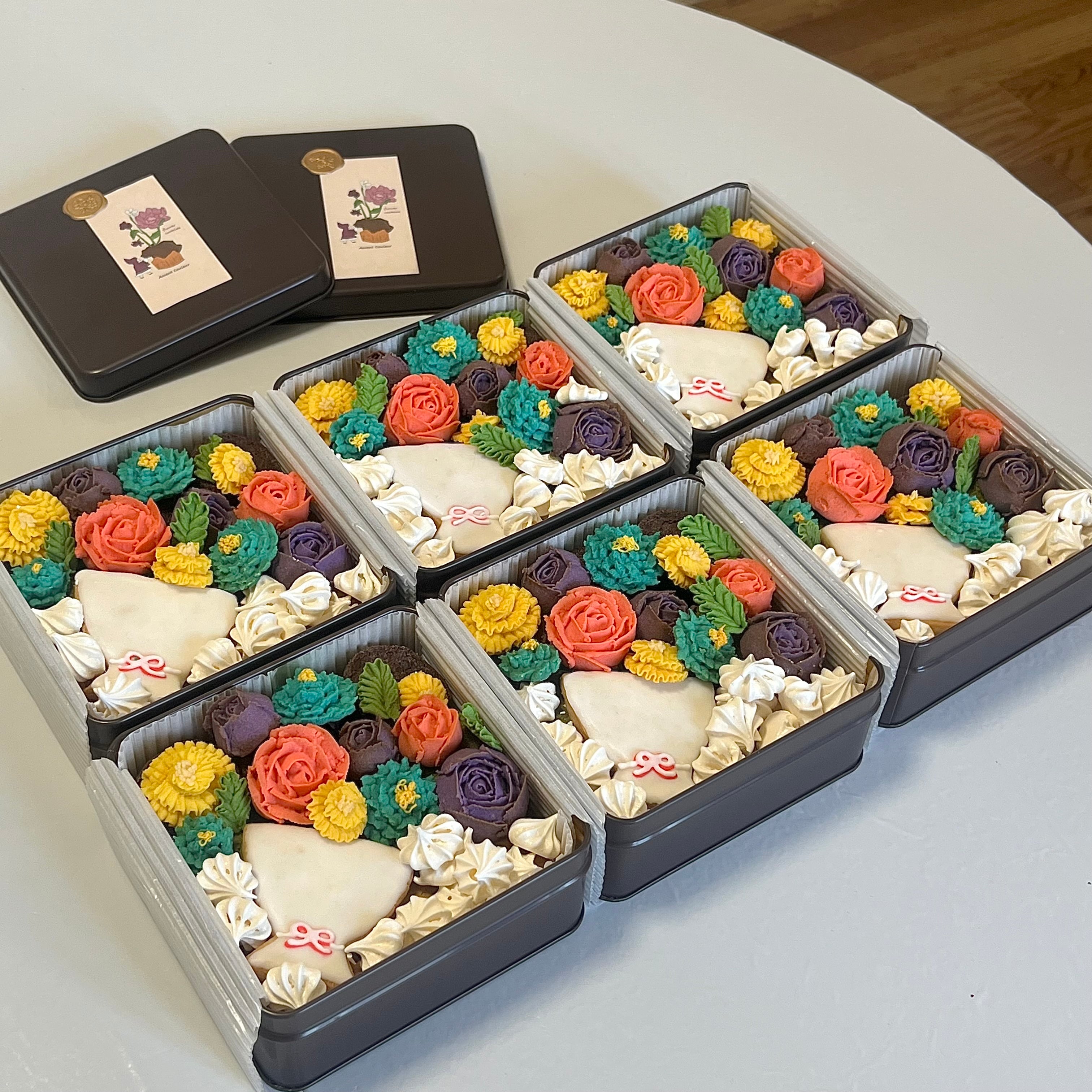 卒業、入学、母の日、ちょっとしたお手土産などにオススメの花束をモチーフにしたクッキー缶になっております!